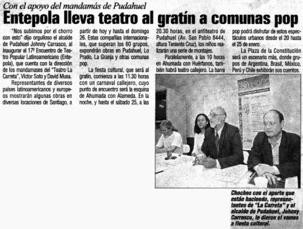 Entepola lleva teatro al gratín a comunas pop. [artículo].