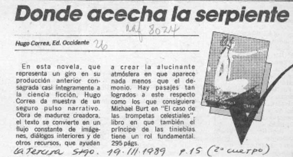 CORREA, HUGO - DONDE ACECHA LA SERPIENTE