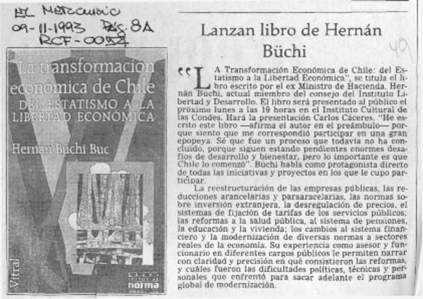 CORREA, HUGO - CORRIENTE SUMERGIDA - BÜCHI, HERNAN - TRANSFORMACION ECONOMICA DE CHILE