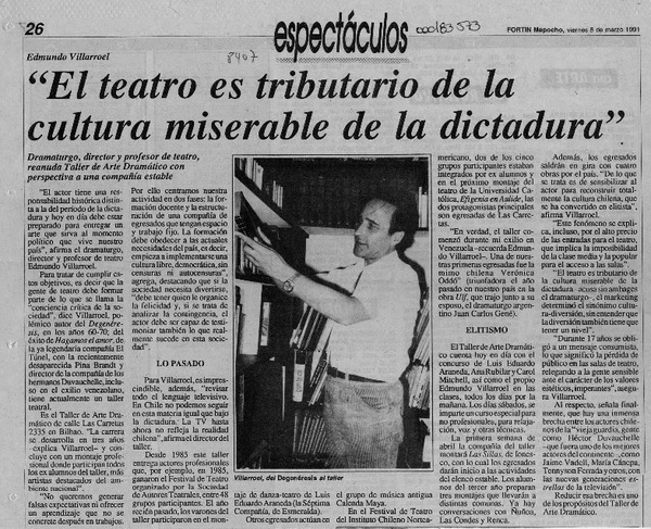 "El Teatro es tributario de la cultura miserable de la dictadura" [artículo].