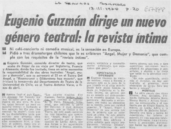Eugenio Guzmán dirige un nuevo género teatral: la revista íntima. [artículo]