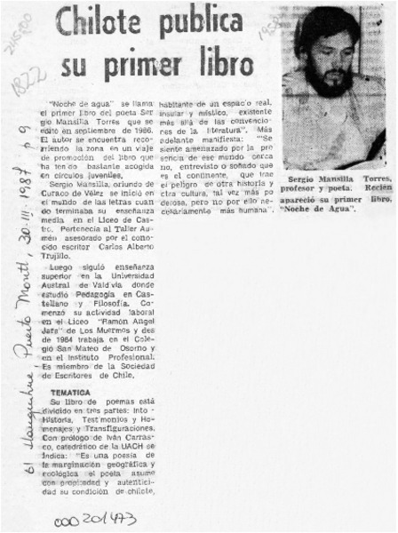 Chilote publica su primer libro [artículo].