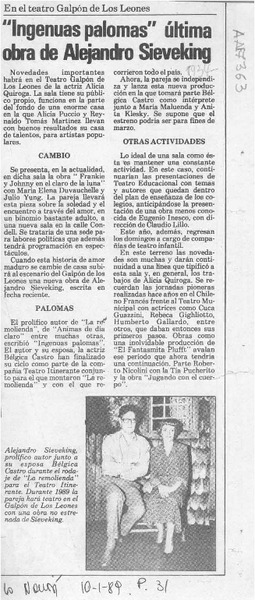 "Ingenuas palomas" última obra de Alejandro Sieveking [artículo].