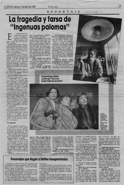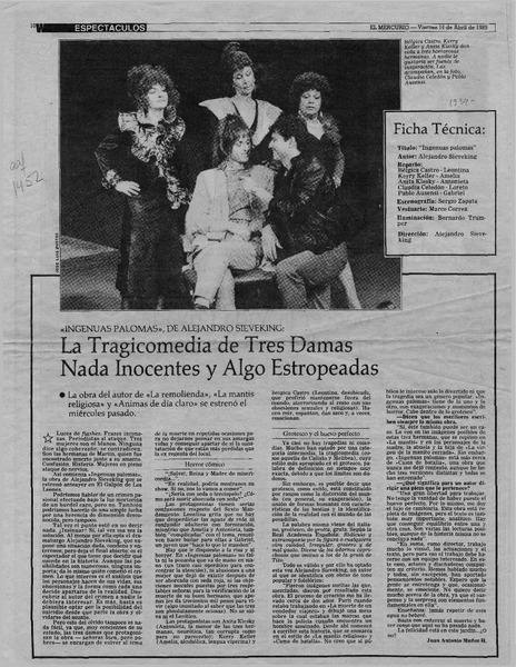 "Ingenuas palomas", una obra débil para un buen equipo de actrices [artículo] Yolanda Montecinos.