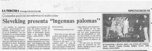 Sieveking presenta "Ingenuas palomas" [artículo].