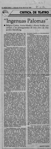"Ingenuas palomas" [artículo] Agustín Letelier.