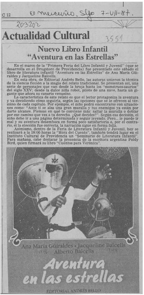 Autoras chilenas - Autores chilenos - Güiraldes, Ana María - Balcells, Jacqueline - Balcells, Alberto - Aventura en las estrellas