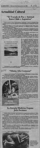 Autoras chilenas - Autores chilenos - Güiraldes, Ana María - Balcells, Jacqueline - Balcells, Alberto - Díaz Albónico, Rodrigo - Misión alfa centauro - Misión Alfa Centauro - El tratado de paz y amistad entre Chile y Argentina