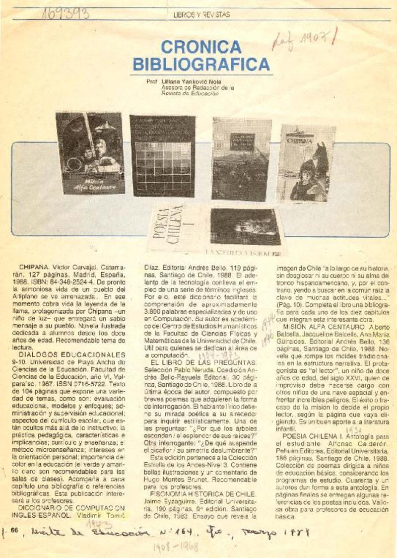 Crónica bibliográfica [artículo] Liliana Yankovic Nola.
