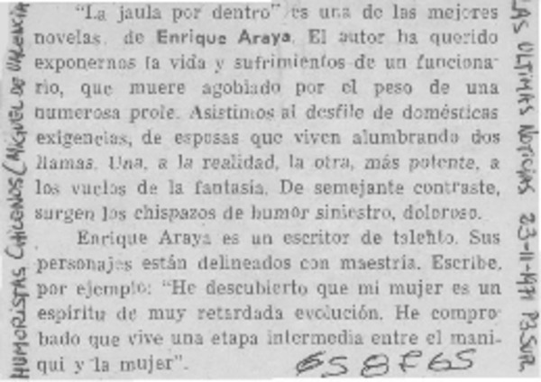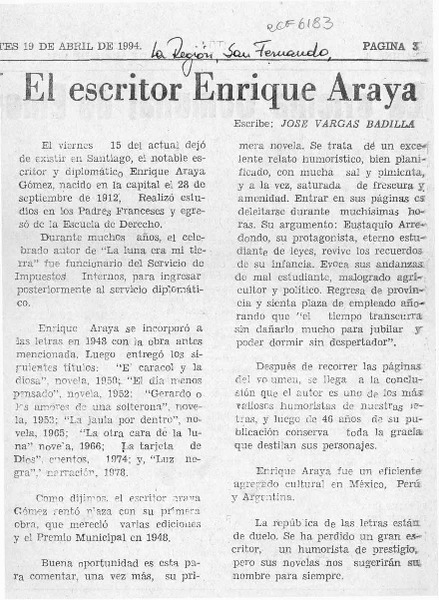 El escritor Enrique Araya [artículo] José Vargas badilla.