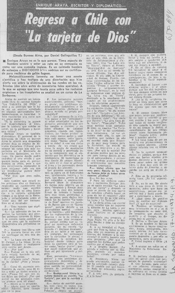 Enrique Araya: "La Tarjeta de Dios". [artículo] Hernán del Solar.