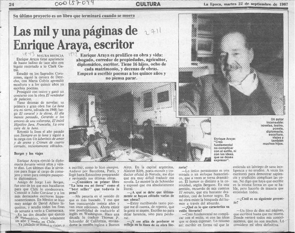Las mil y una páginas de Enrique Araya, escritor [artículo] Maura Brescia.