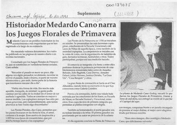 Historiador Medardo Cano narra los Juegos Florales de Primavera [artículo].