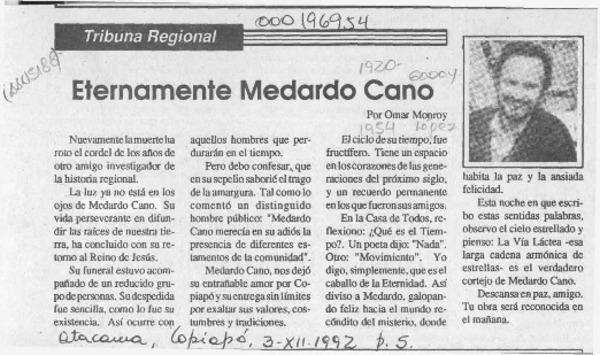 Eternamente Medardo Cano [artículo] Omar Monroy.