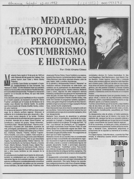 Medardo, teatro popular, periodismo, costumbrismo e historia [artículo] Oriel Alvarez Gómez.
