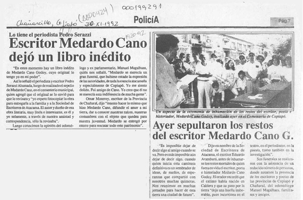 Escritor Medardo Cano dejó un libro inédito [artículo].