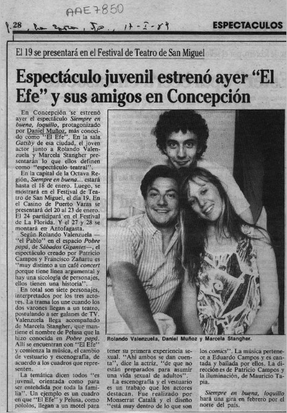 Espectáculo juvenil estrenó ayer "El Efe" y sus amigos en Concepción [artículo].