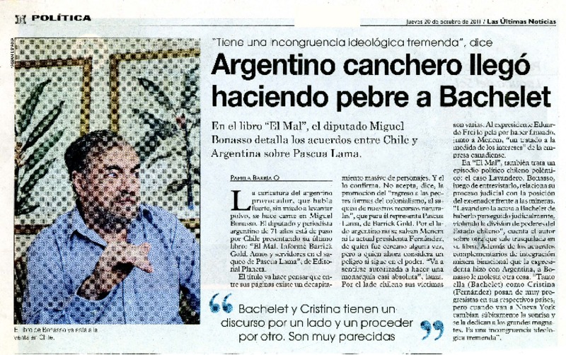 Argentino canchero llegó haciendo pebre a Bachelet [artículo] Pamela Barrìa O.