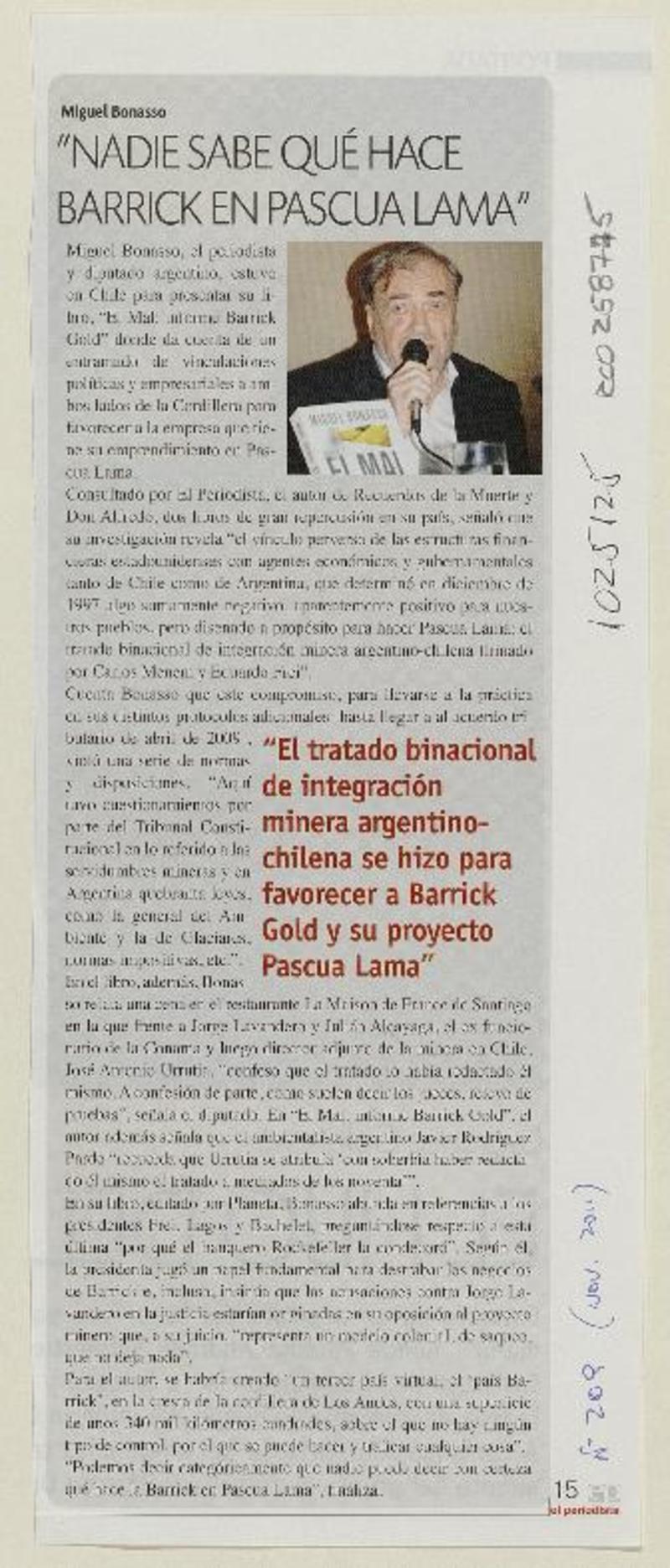 "Nadie sabe qué hace Barrick en Pascua Lama" [artículo].