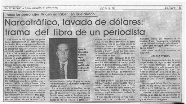 Narcotráfico, lavado de dólares, trama del libro de un periodista [artículo].