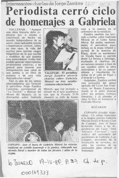 Periodista cerró ciclo de homenajes a Gabriela [artículo].