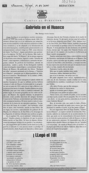 Gabriela en el Huasco [artículo] Benigno Ávalos Ansieta