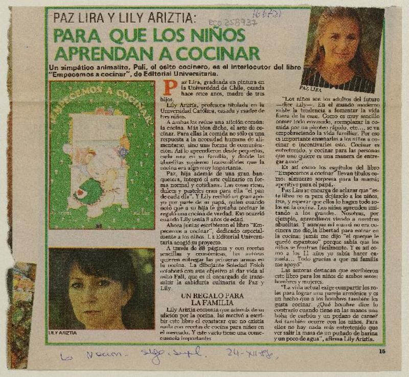 Ariztía, Lily - Lira, Paz - Aqui Moscú - Maza, Bernardo de la - Empecemos a cocinar - Autores chilenos