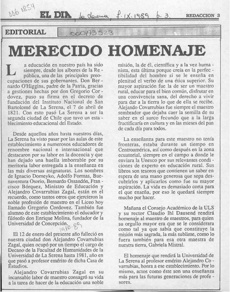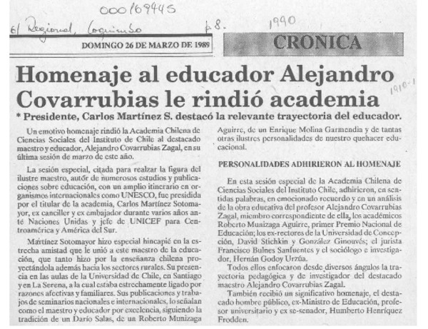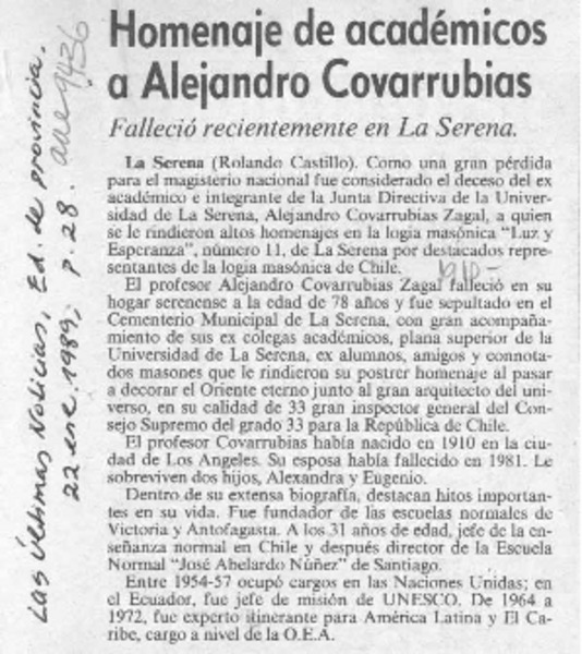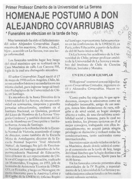 Homenaje póstumo a don Alejandro Covarrubias [artículo].