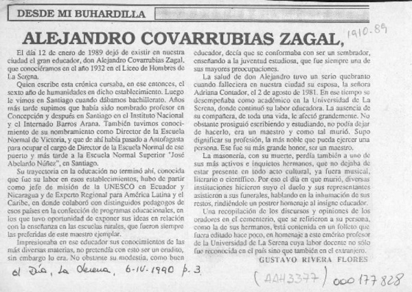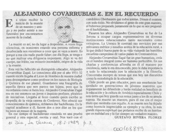 Alejandro Covarrubias Z. en el recuerdo [artículo] Gustavo Rivera Flores.