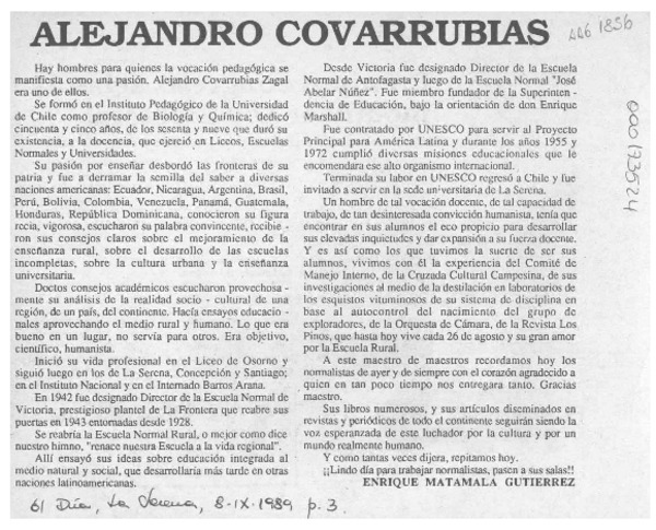 Alejandro Covarrubias [artículo] Enrique Matamala Gutiérrez.