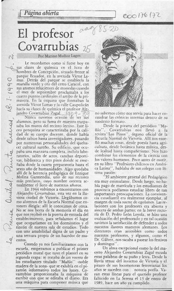 El profesor Covarrubias [artículo] Marino Muñoz Lagos.