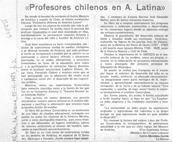Profesores chilenos en A. Latina" [artículo] Elías Sepúlveda Veloso.