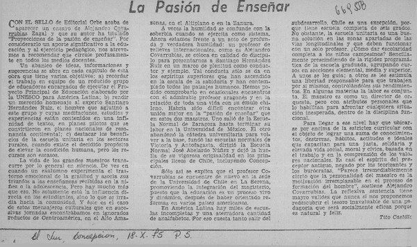Proyecciones de la pasión de enseñar [artículo] V. M.