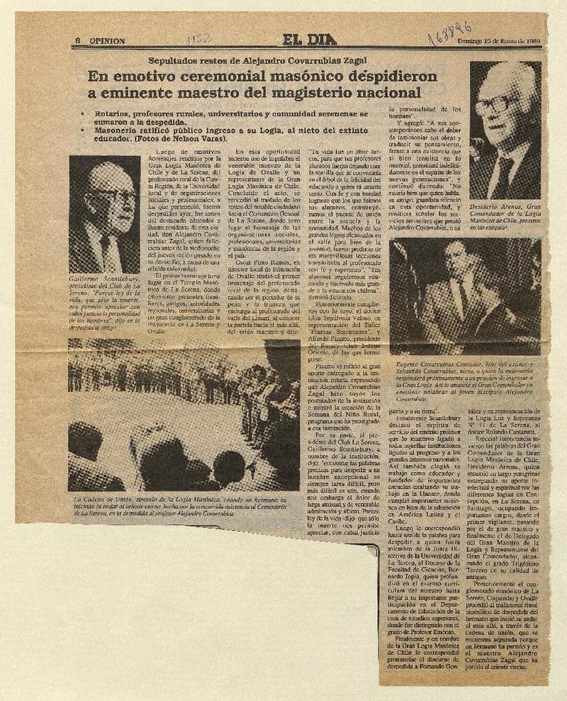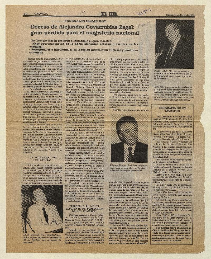 Deceso de Alejandro Covarrubias Zagal, gran pérdida para el magisterio nacional [artículo]