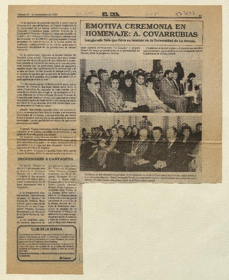 Emotiva ceremonia en homenaje, A. Covarrubias [entrevista]. [artículo] :