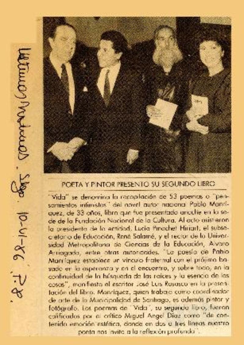 Poeta y pintor presentó su segundo libro [artículo].