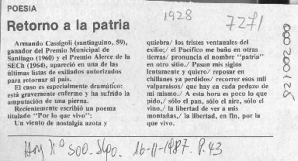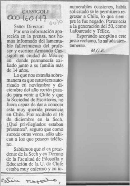 Recordando a Cassígoli [artículo] Emilio Oviedo.