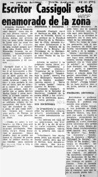 Escritor Armando Cassigoli de visita en Punta Arenas. [artículo]