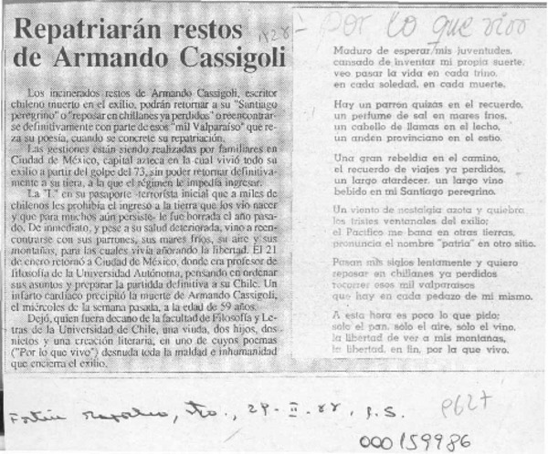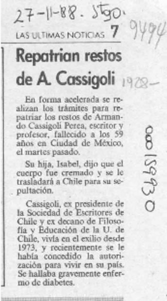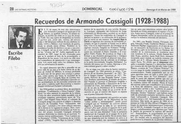 Recuerdos de Armando Cassigoli (1928-1988) [artículo] Filebo.