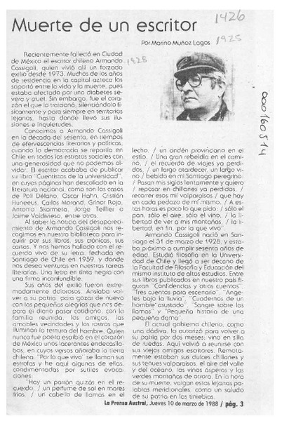 Muerte de un escritor [artículo] Marino Muñoz Lagos.