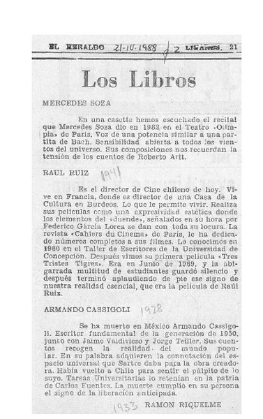Armando Cassigoli [artículo] Ramón Riquelme.