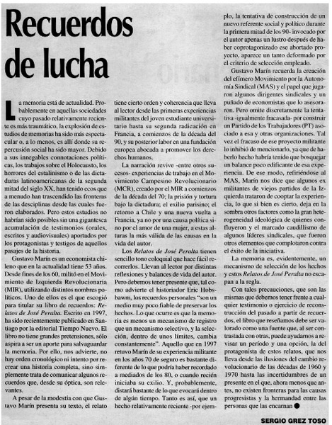 Recuerdos de lucha [artículo] Sergio Grez Toso.