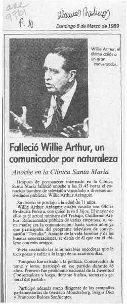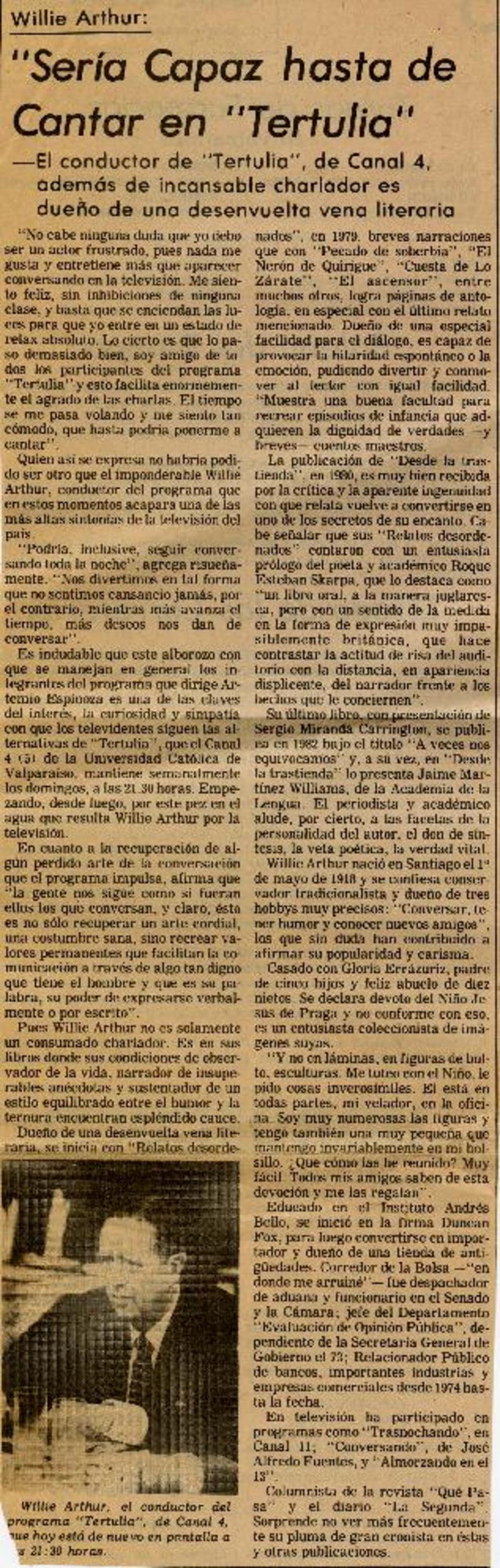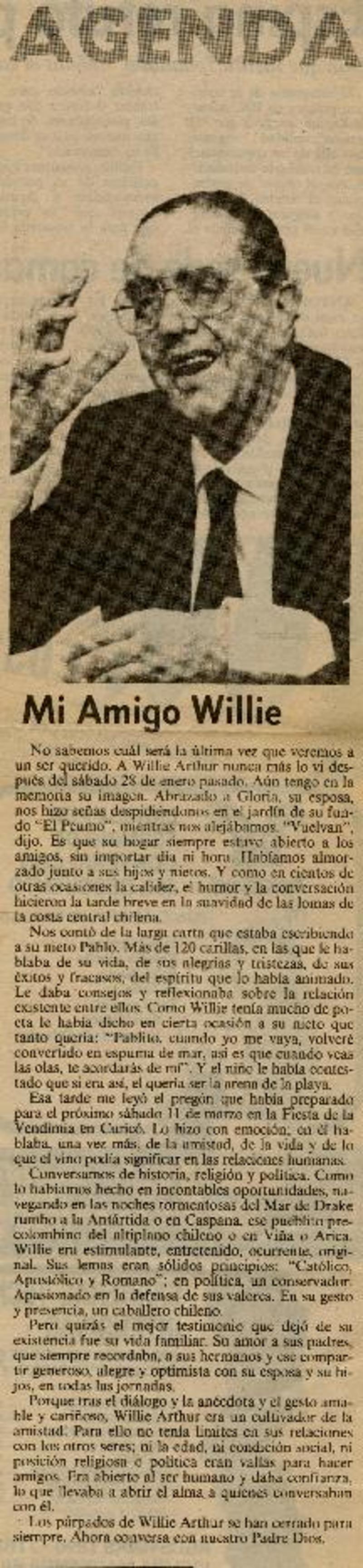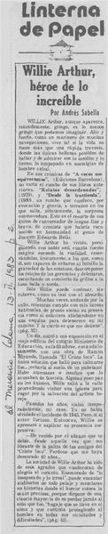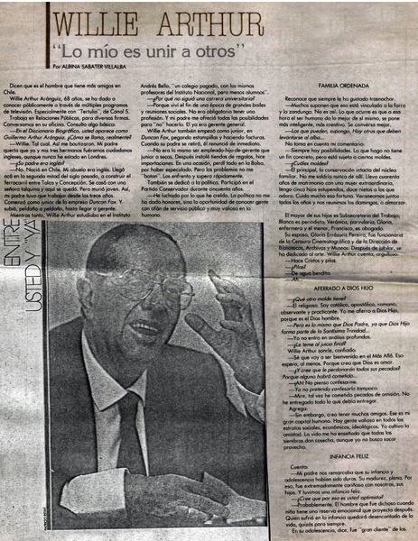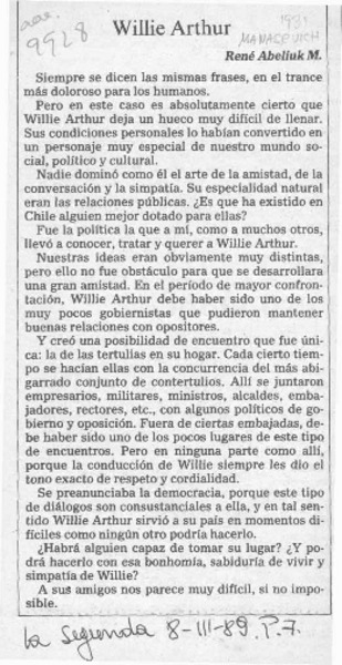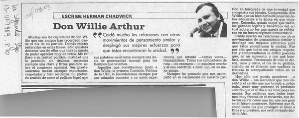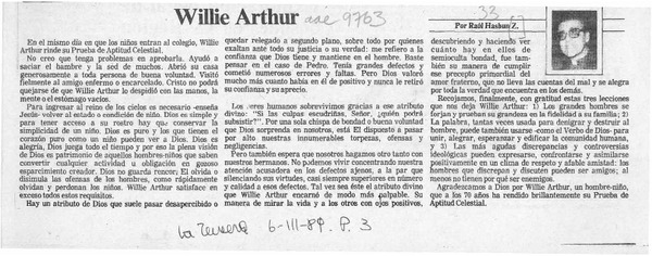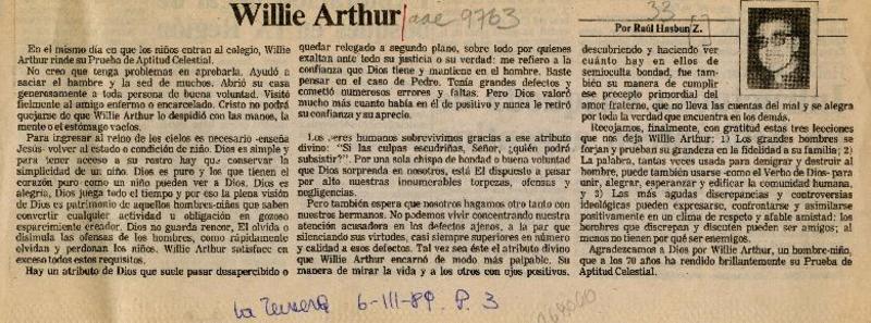 Willie Arthur [artículo] Por, Raúl Hasbún Z.