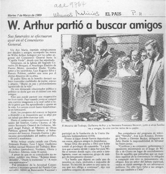 Willie Arthur Aránguiz [artículo] Guillermo Arthur Errázuriz.