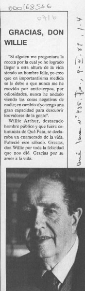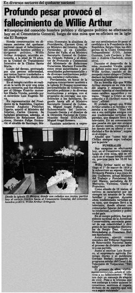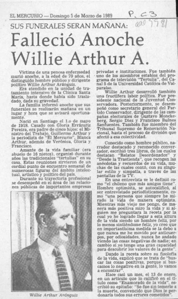 Profundo pesar provocó el fallecimiento de Willie Arthur [artículo].