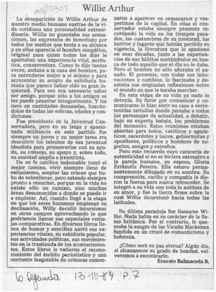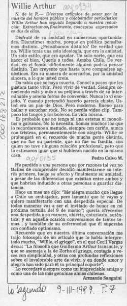 Willie Arthur [artículo] Ernesto Balmaceda B.