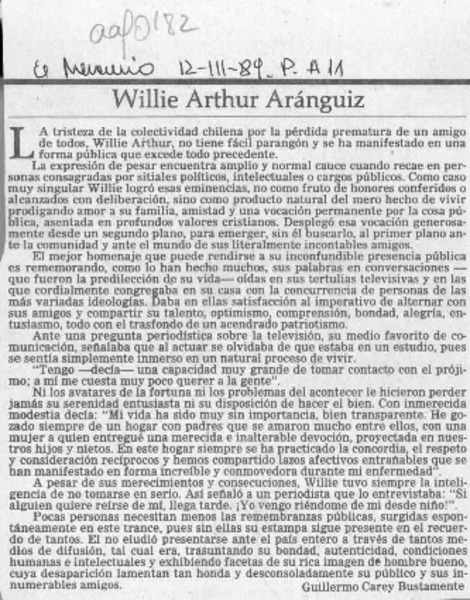 Willie Arthur Aránguiz [artículo] Guillermo Carey Bustamante.