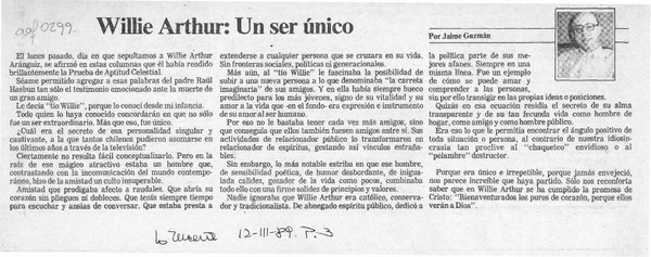 Willie Arthur, un ser único [artículo] Jaime Guzmán.