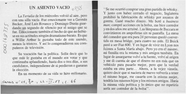 La última tertulia de don Willie [artículo] Pablo Huneeus.