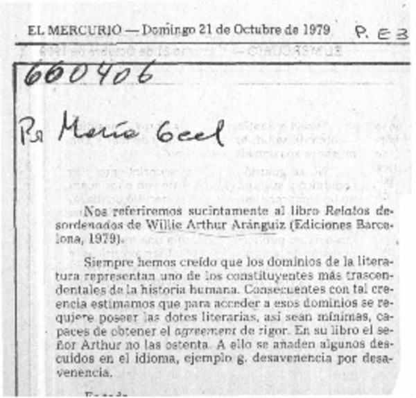 Autores chilenos - Arthur Aránguiz, Willie - Relatos desordenados
